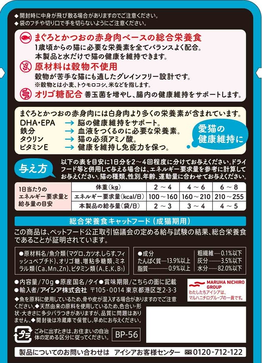 ・DHA、EPA、鉄分、タウリン、ビタミンEを含むまぐろとかつおの赤身肉ベースの総合栄養食です。