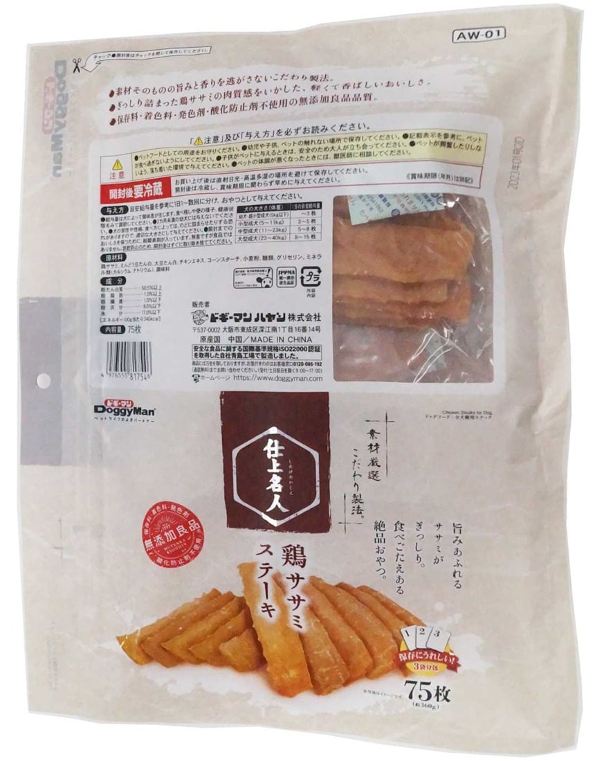 [12個]ドギーマンハヤシ 仕上名人 鶏ササミステーキ 75枚入(約360g) | 素材厳選!こだわり製法!