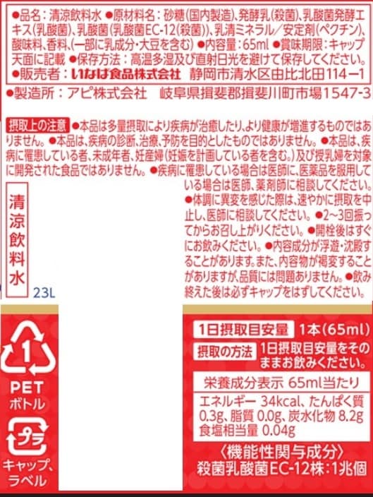 [20本]いなば食品 【機能性表示食品】1兆個すごい乳酸菌ドリンク 65ml | ビフィズス菌を増やし腸内環境を改善する
