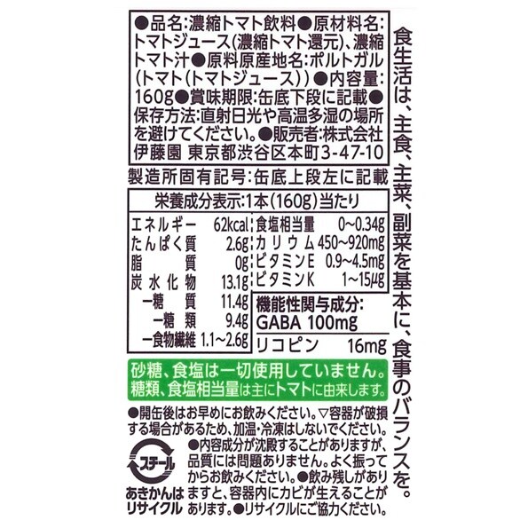 [60本]【賞味期限間近】【機能性表示食品】伊藤園 健康体 健康GABAトマト 160g | GABAの働きで高めの血圧対策。さらに3つの健康機能がうれしいトマト100%飲料。