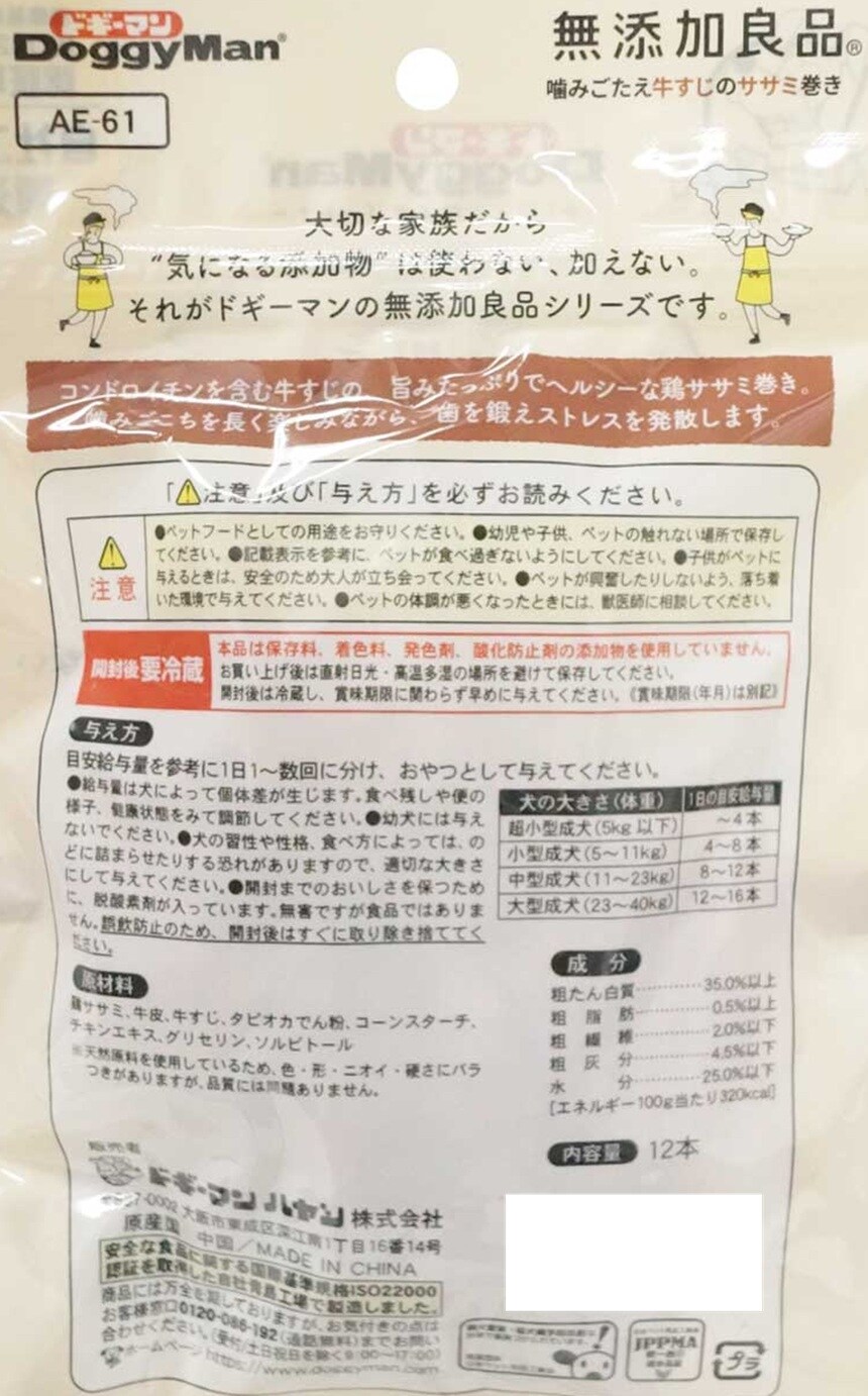 - 無添加良品 噛みごたえ牛すじのササミ巻き 12本入