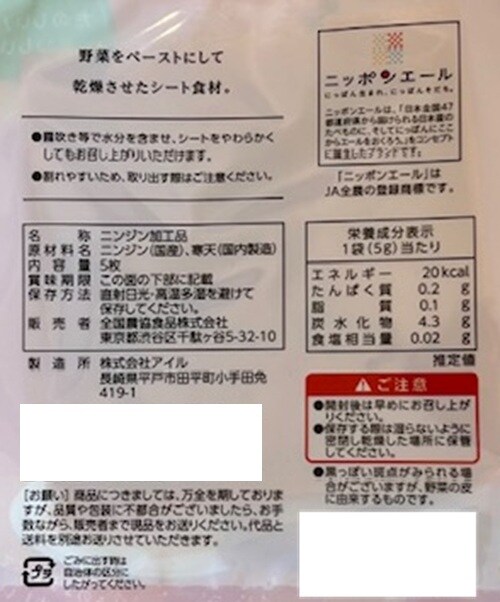 - ・ニッポンエール 国産にんじん やさいシート 5枚入×10袋