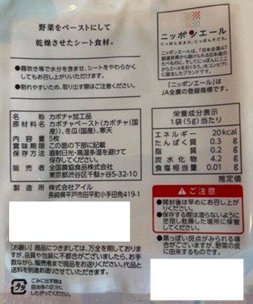 ・ニッポンエール 国産かぼちゃ やさいシート 5枚入×10袋