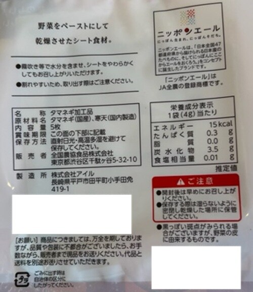 ・ニッポンエール 国産たまねぎ やさいシート 5枚入×10袋 - 賞味期限