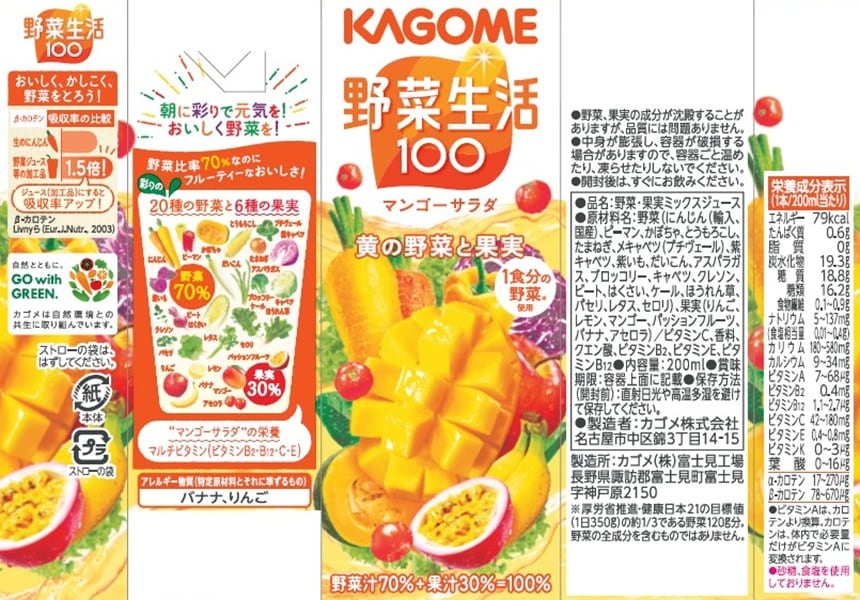 ・野菜生活100(マンゴーサラダ、アップルサラダ)各200ml×5本