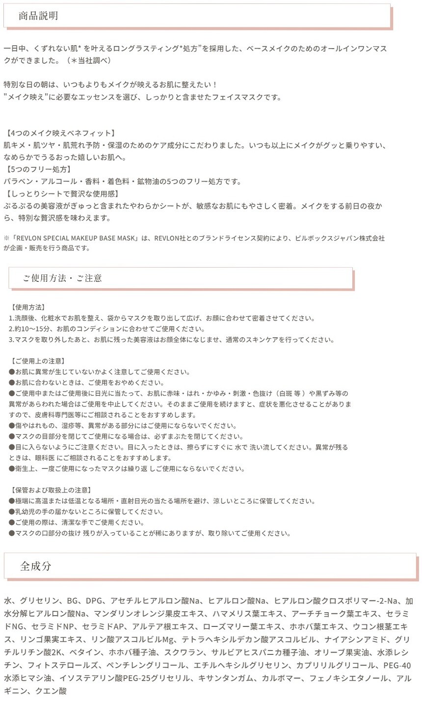 - https://www.pillboxjapan.com/brands/revlon-special-makeup-base-mask/