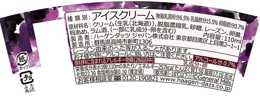 ラム酒にじっくりと漬け込んだカリフォルニア産レーズンを使用したアイスクリーム乳牛の食む牧草にまでこだわったミルクを使用し、ハーゲンダッツ独自の技術により、リッチでクリーミーな味わいを実現しました