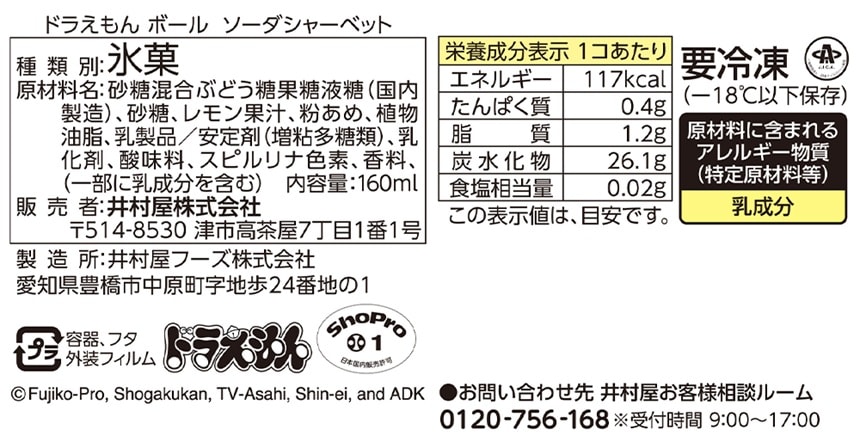 - [冷凍]井村屋 ドラえもん ボール 160ml×18個