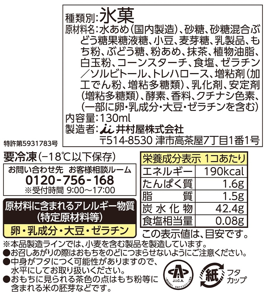 [冷凍]井村屋 やわもちアイス 抹茶氷 130ml×24個 | 4層構造のすっきりとしたやわもちアイスです