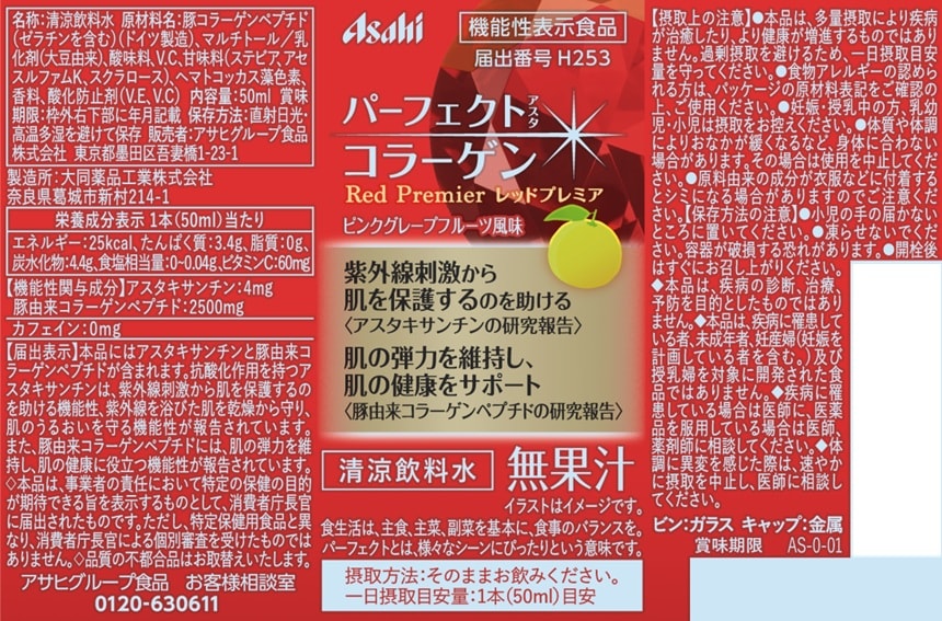 - 【機能性表示食品】パーフェクトアスタコラーゲン ドリンク レッドプレミアa 50ml×3本入