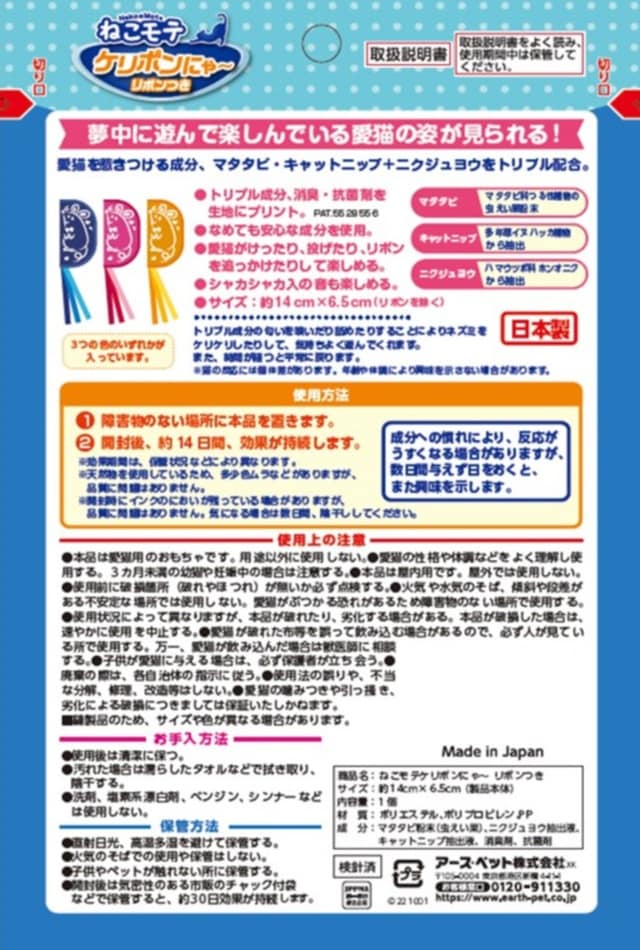 [12個]アース・ペット ねこモテ ケリポンにゃ~ リボンつき 1個入り | 夢中で遊んで楽しんでいる愛猫の姿が見られる!愛猫を惹きつける成分をトリプル配合。