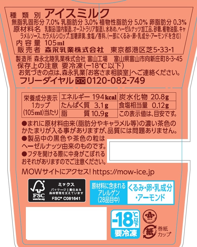 [冷凍]森永乳業 MOW PRIME(モウプライム) ヘーゼルナッツ&キャラメル 105ml×12個 | 乳の“コク”をベースに、素材本来の“個性あるおいしさ”が味わえるアイスクリーム