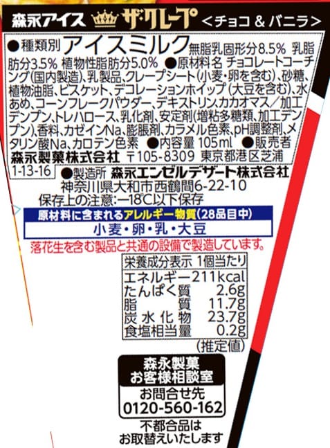 - [冷凍]森永製菓 ザ・クレープ <チョコ&バニラ> 105ml×28個