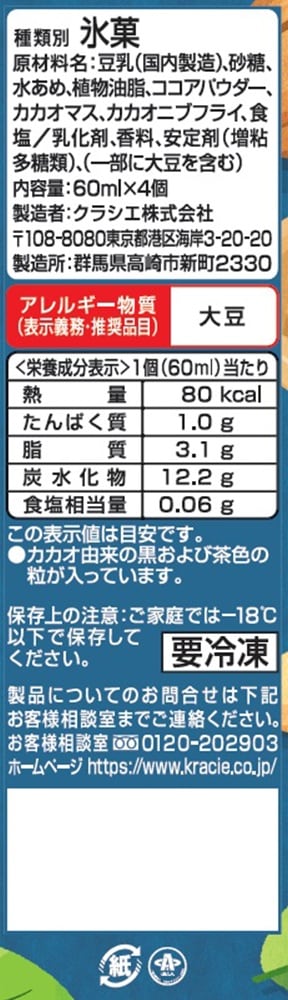 [冷凍]クラシエ Soyマルチ チョコ (60ml×4個)×8箱 | アレルギー特定原材料8品目不使用の豆乳アイス