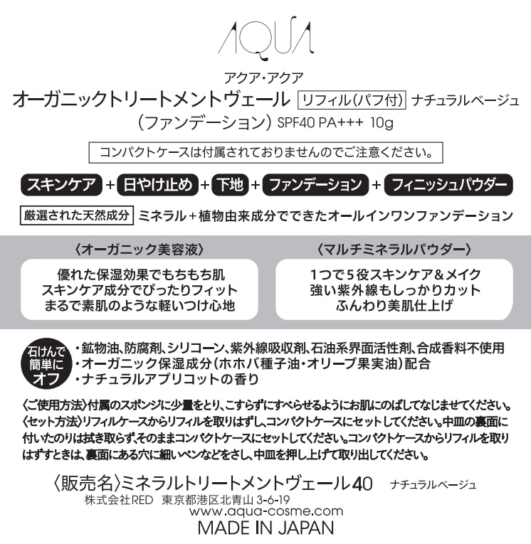 - アクア・アクア ミネラルトリートメントヴェール40 リフィル ナチュラルベージュ ※リニューアル前商品