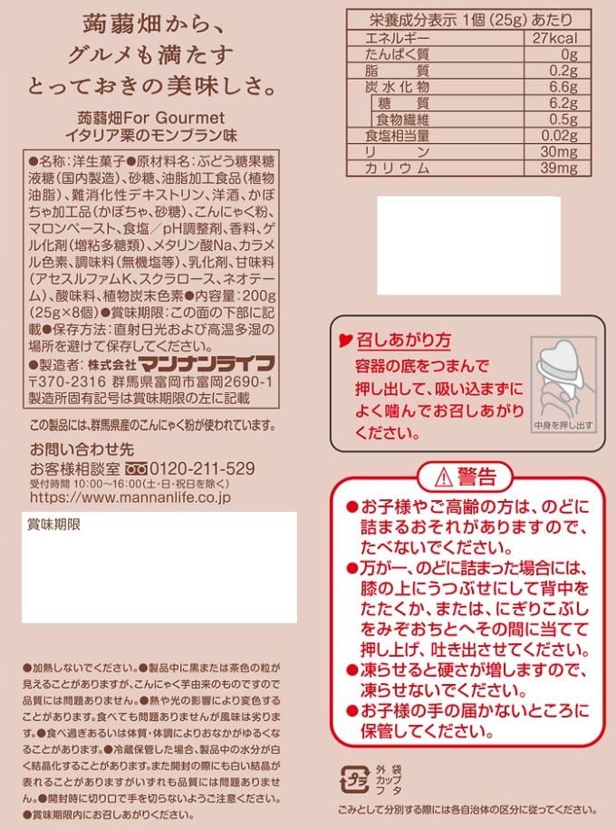 - 蒟蒻畑For Gourmet イタリア栗のモンブラン味 200g(25g×8個)