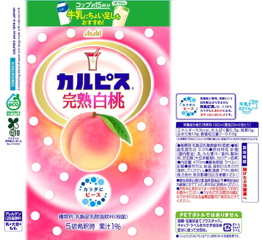【「カルピスⓇ完熟白桃」プラスチックボトル470ml】
