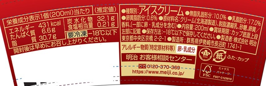 ※アイスクリーム類は、-18度以下での冷凍保存の状態では、品質の劣化が極めて小さい食品ということで、賞味期限の設定がされておりません。