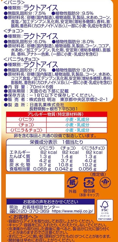 ※アイスクリーム類は、-18度以下での冷凍保存の状態では、品質の劣化が極めて小さい食品ということで、賞味期限の設定がされておりません。