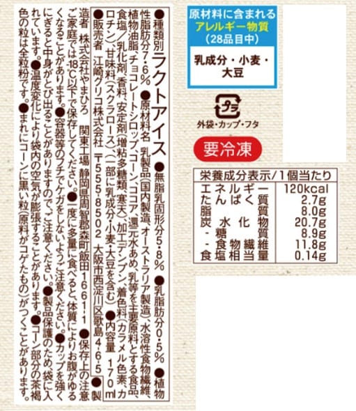 ※アイスクリーム類は、-18度以下での冷凍保存の状態では、品質の劣化が極めて小さい食品ということで、賞味期限の設定がされておりません。