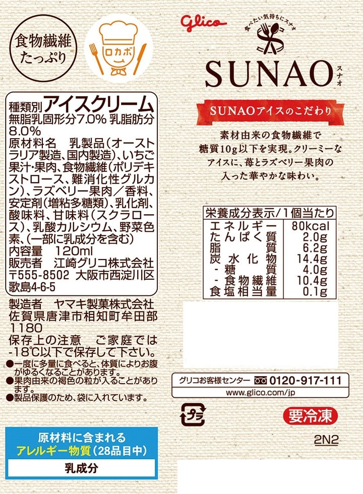[冷凍]江崎グリコ SUNAO ストロベリー&ラズベリー 120ml×36個 | こだわり素材で糖質10g以下
