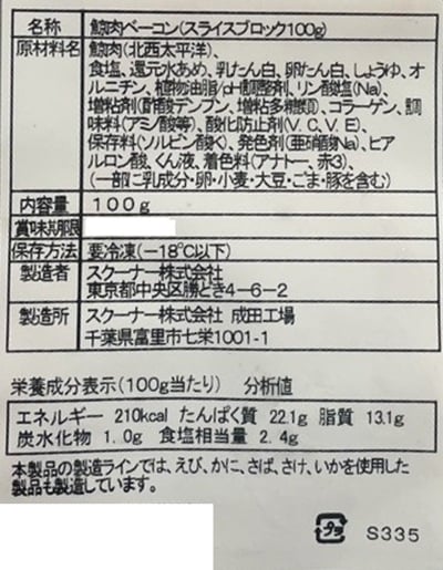 - [冷凍]【4個】鯨ベーコンスライスブロック 100g