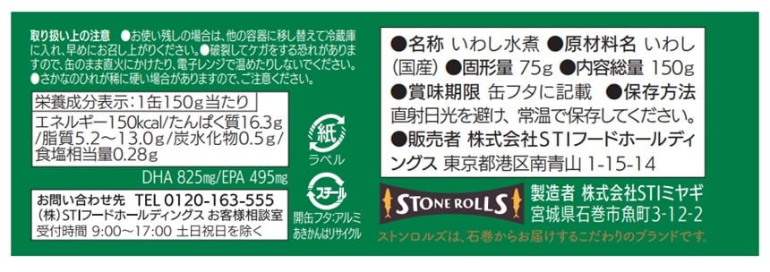 - ストンロルズ 国産いわし水煮 食塩不使用 150g