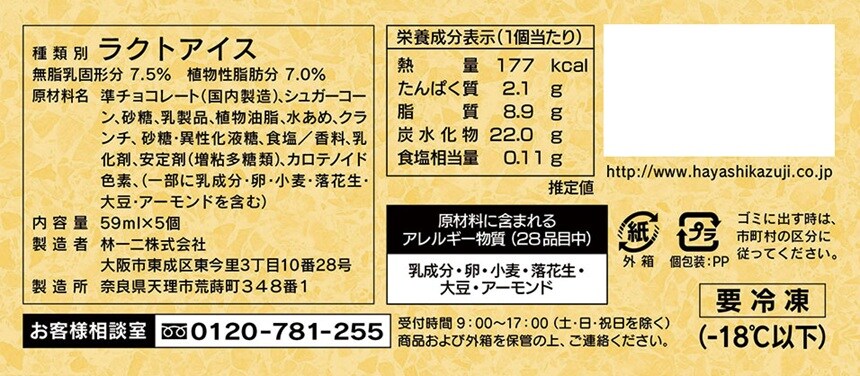 ※アイスクリーム類は、-18度以下での冷凍保存の状態では、品質の劣化が極めて小さい食品ということで、賞味期限の設定がされておりません。