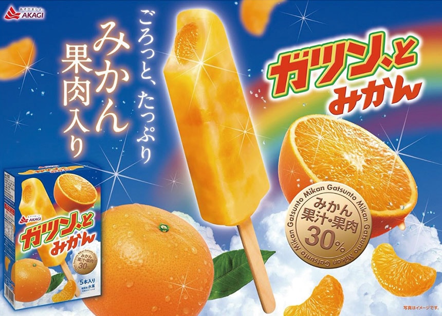フルーティーなみかんアイスキャンディーにみかん果肉をガツン、と詰め込みました。