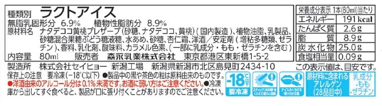 ※アイスクリーム類は、-18度以下での冷凍保存の状態では、品質の劣化が極めて小さい食品ということで、賞味期限の設定がされておりません。