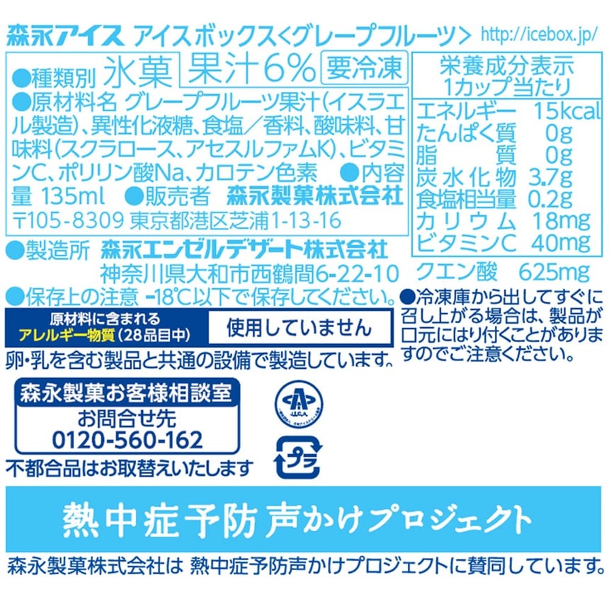 - [冷凍]森永製菓 アイスボックス<グレープフルーツ> 135ml×10個