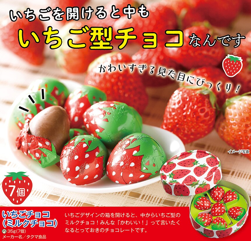 [20箱]タクマ食品 いちごチョコ(ミルクチョコ) 35g(7個入) | いちごを開けると中もいちご型チョコなんです。かわいすぎる見た目にびっくり!