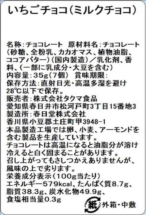 - いちごチョコ(ミルクチョコ) 35g(7個入)