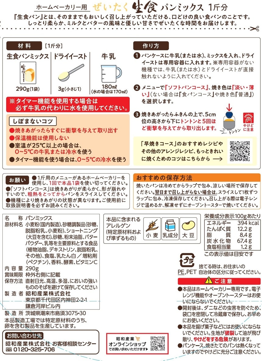 しっとり柔らか、ミルクとバターの味わいと優しい甘さで専門店のような高級食パンの焼き立て品質が楽しめるホームベーカリー用パンミックスです。