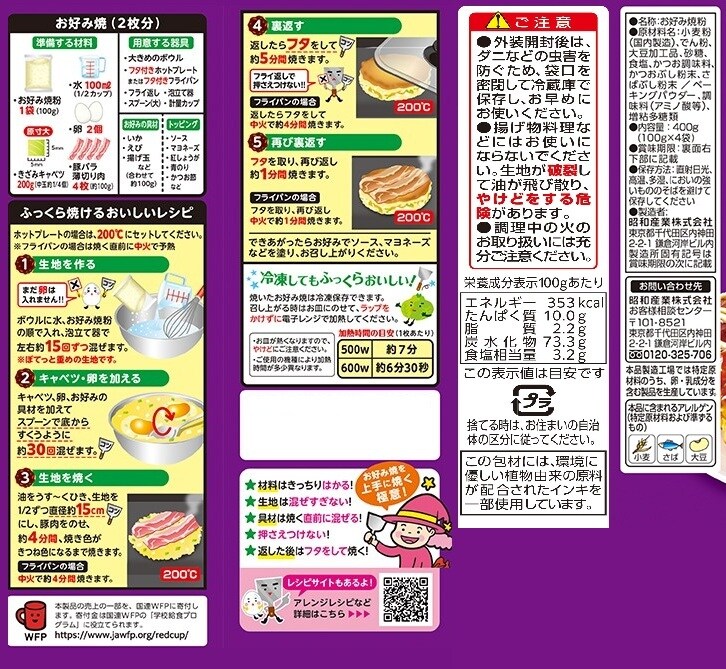 [24袋]昭和産業 おいしく焼ける魔法のお好み焼粉 400g | 3つの魔法のわけで、おいしいお好み焼きが失敗なく作れます。
