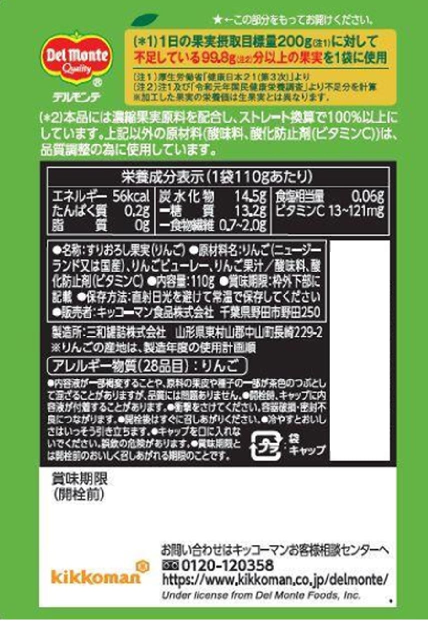 - ・デルモンテ ピュレフルーツ そのまま食べるすりおろしりんご 110g×18個