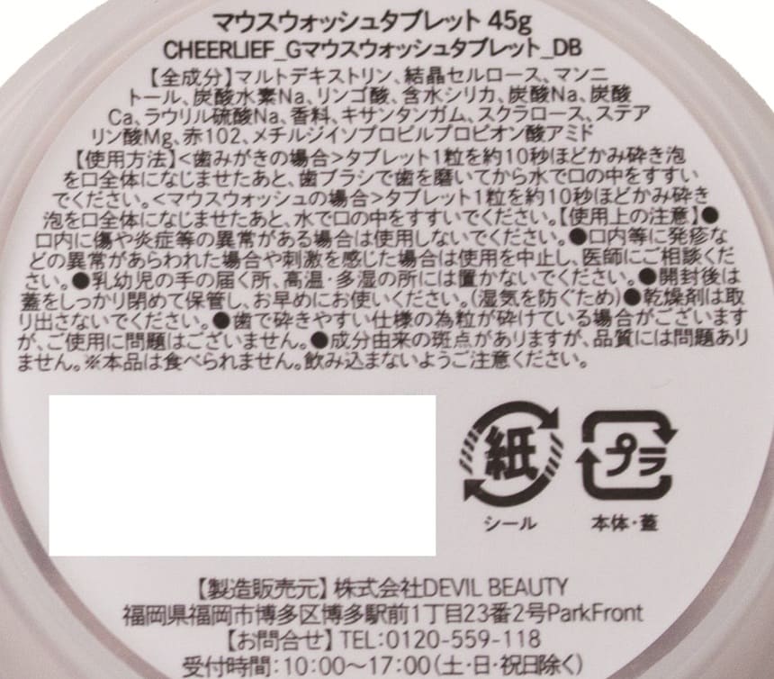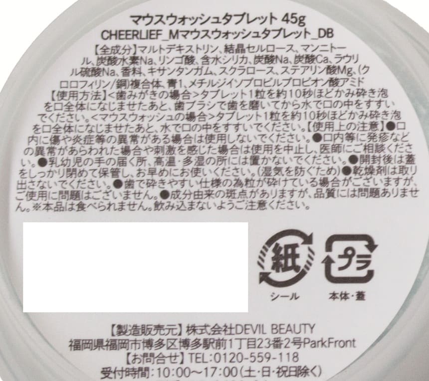 - ・マウスウォッシュタブレット ミント味 45g×2個