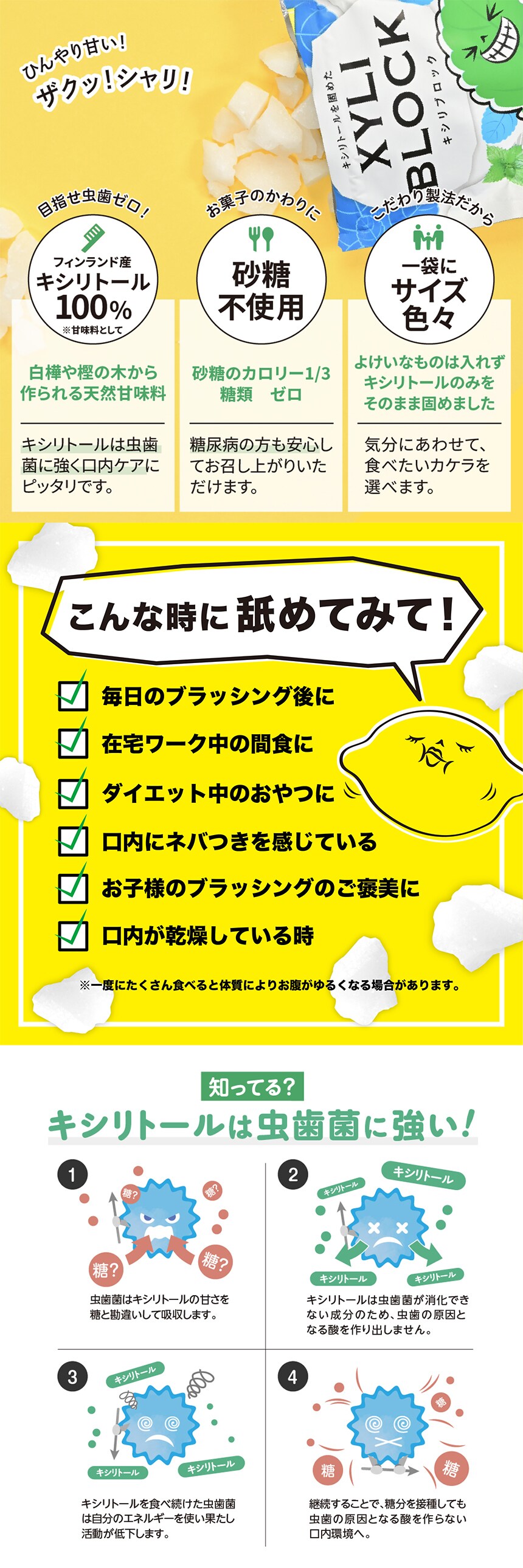 舐めてひんやり、噛んでシャリシャリな新食感。フィンランド産キシリトール使用。