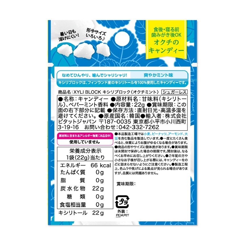[30個]ビタットジャパン キシリブロック(オクチミント) 22g | フィンランド産のキシリトールを100%使用したキシリトールのキャンディ。ハミガキ後や食事の後に。口内や虫歯予防に!