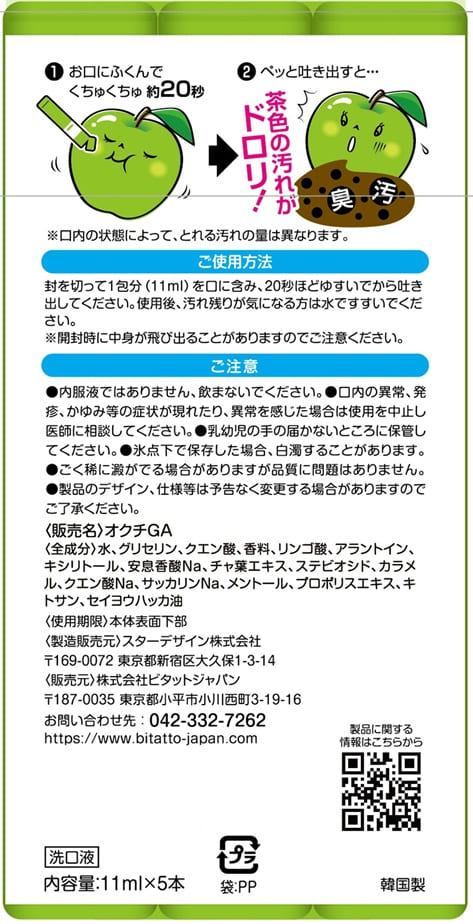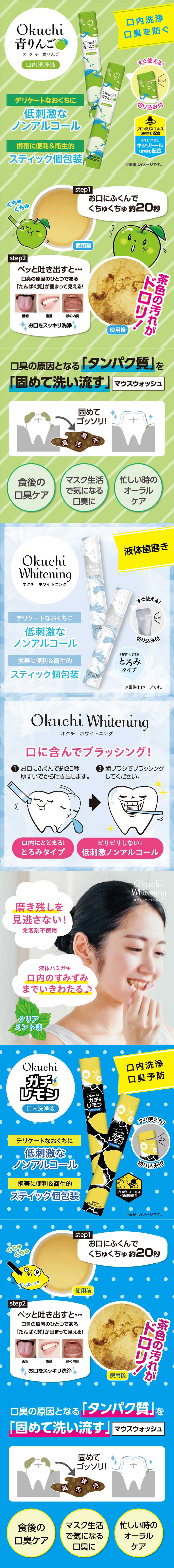 - オクチ青りんご (マウスウォッシュ) / オクチホワイトニング (液体ハミガキ) / オクチガチレモン (マウスウォッシュ)