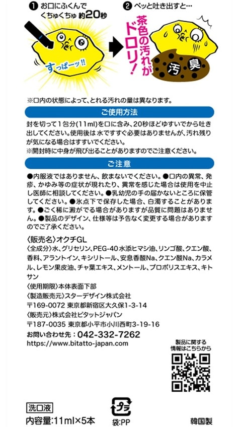 ・オクチガチレモン (マウスウォッシュ) 計120本(11ml×5本入×24個) - 使用期限