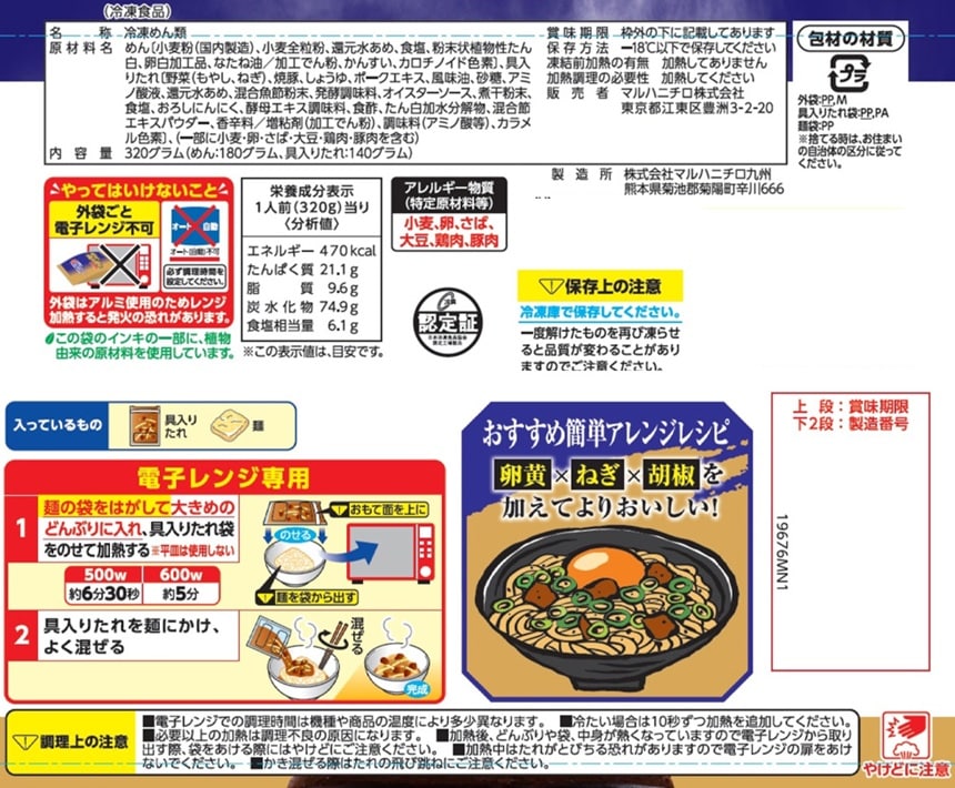 - [冷凍]マルハニチロ 濃厚!魚介豚骨まぜそば 320g×12個