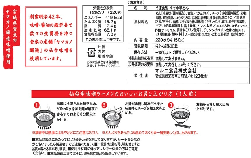- [冷凍]マルニ食品 仙台辛味噌ラーメン 220g×12袋