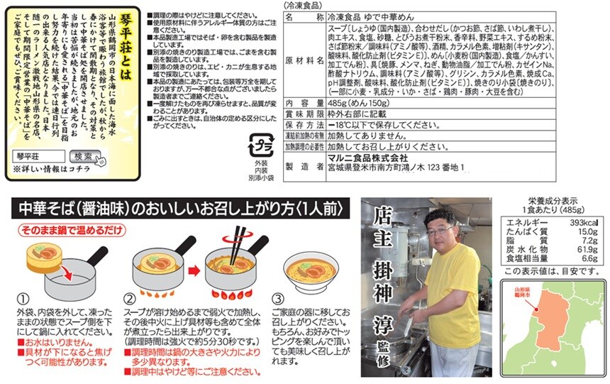 - [冷凍]マルニ食品 そのまま琴平荘 中華そば醤油味 485g×8袋