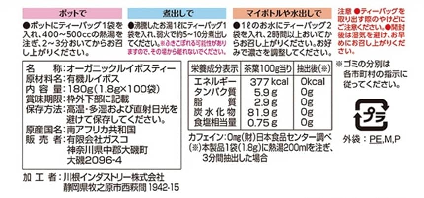 ●水出しルイボスにもおすすめ! 近年日本でも人気の水出しルイボスティー、沸騰したお湯を使わないので茶葉の微生物基準には注意が必要です。