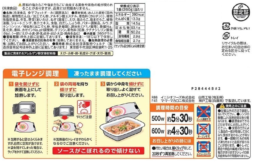 - [冷凍]日清製粉ウェルナ マ・マー RICH-NA 海老ときのこのたらこクリーム 260g×12個