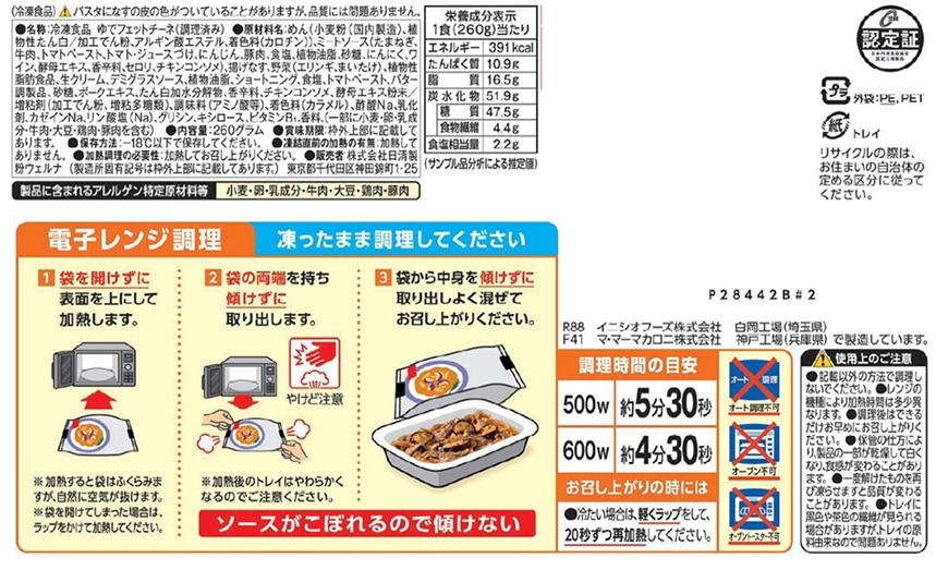 - [冷凍]日清製粉ウェルナ マ・マー RICH-NA まいたけとなすのクリーミーボロネーゼ 260g×12個