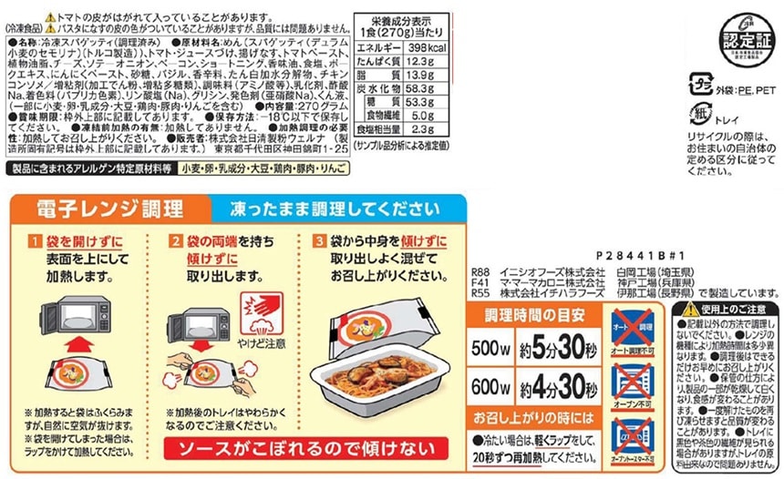 - [冷凍]日清製粉ウェルナ マ・マー RICH-NA なすとベーコンのトマトチーズ 270g×12個