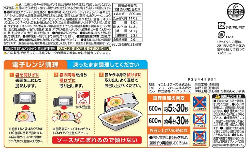 - [冷凍]日清製粉ウェルナ マ・マー RICH-NA 金時鯛と明太子のおだしパスタ 260g×12個