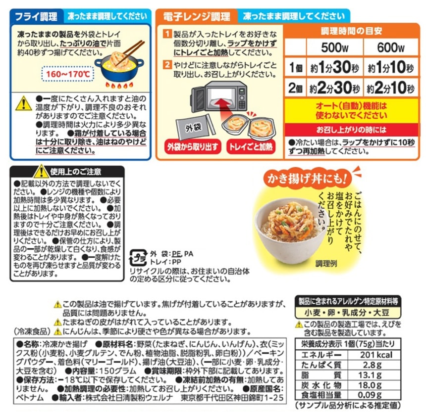 - [冷凍]日清製粉ウェルナ サクッと野菜かき揚げ 150g×12個